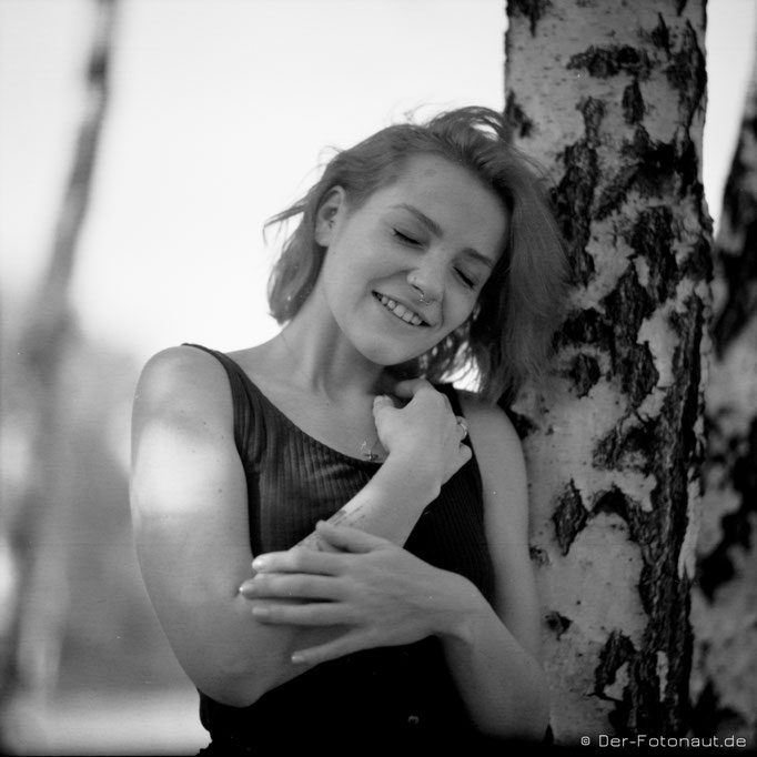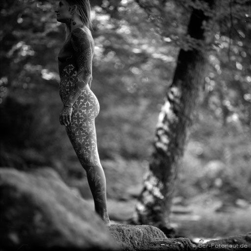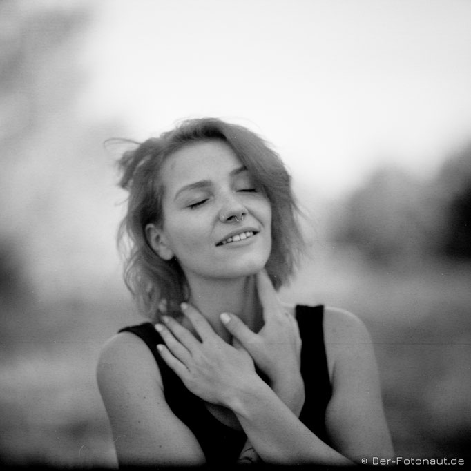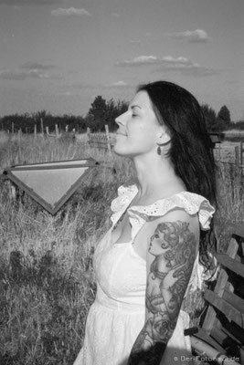 Da ich auch ein beobachtender Mensch bin, ist sie mir ins Auge gefallen. So machte ich den ersten Schritt auf sie zu und fragte sie, ob sie sich vorstellen können, gern mal vor meiner Kamera stehen? Ich erklärte ihr noch, dass ich sie gern analog ins Bild nehmen möchte und da nicht die Möglichkeit ist, sofort die Bilder zu sehen. Trotz dass das so ist beim analogen Fotogarfieren, war sie sofort begeistert und es ging los.
