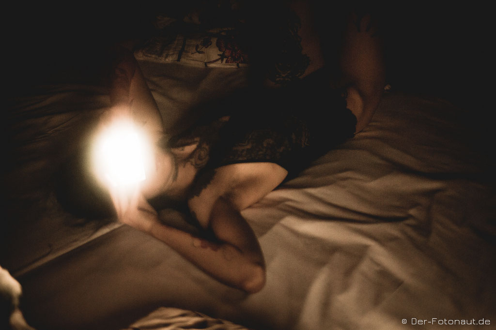 Plötzliche Extrawünsche nach Glühwein werden mir erfüllt. Ich versuche es nochmal. Die Musik lenkt mich ab. Peter und ich stöbern nochmal im CD und Schallplatten Regal. Das macht Spaß. So etwas habe ich lange nicht mehr gemacht. Nach einer Weile stelle ich fest, dass er da ein besseres Händchen hat. Musik läuft. Ich lasse mich fallen. Im Wahrsten Sinne des Wortes. Es war keine leise Fotorunde. Viel Lachen. Viel vom Bett poltern, weil ich vor lauter Fallenlassen vergesse, dass Schwerkraft existiert.