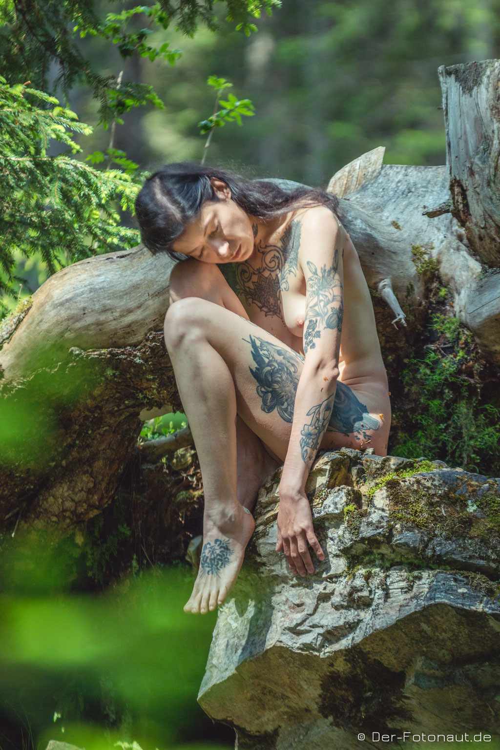 …man mag es nicht glauben, als ich durch den Wald ging, sah ich sie auf einmal. Sie, die Waldfrau! Sie musste es gewesen sein, weil sie den Erzählungen voll und ganz entsprach. Sie sahs einfach da, so zart, zerbrechlich, zurückhalten und nackt,