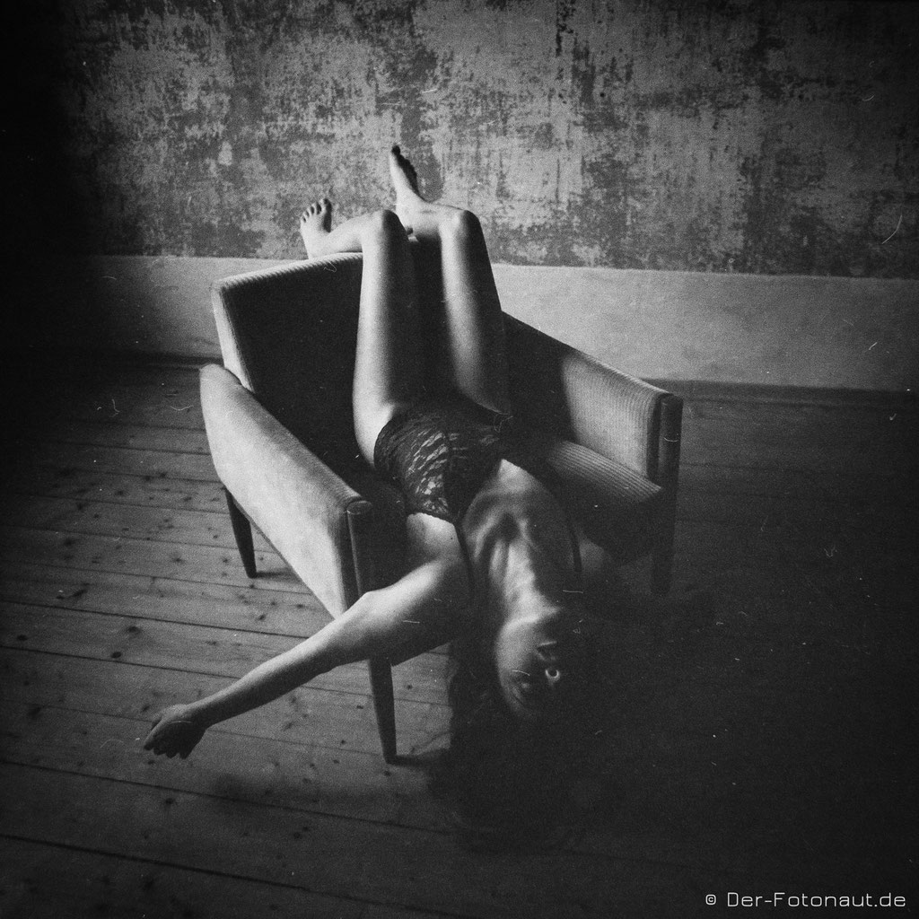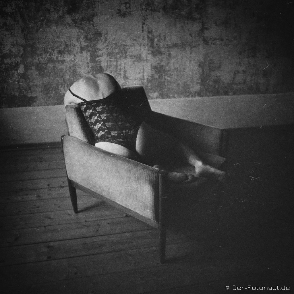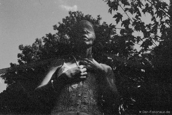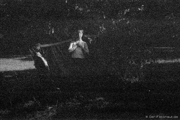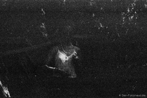 Hier ist mir etwas Verrücktes passiert und ich weiß immer noch nicht so recht warum! Der Film wurde bei diesen Bildern extrem unterbelichtet. Was auf der einen Seite sehr schade ist, was ich allerdings auch wieder sehr cool finde. Warum? Dadurch das Umwandeln in SW, konnte ich etwas mehr aus dem Negativ herausholen und letztendlich bekam diese Geschichte auf einmal eine ganz andere Essenz. Vor allem durch das nur schemenhafte und nicht ganz deutliche, hat es mehr an Düsterheit bekommen.