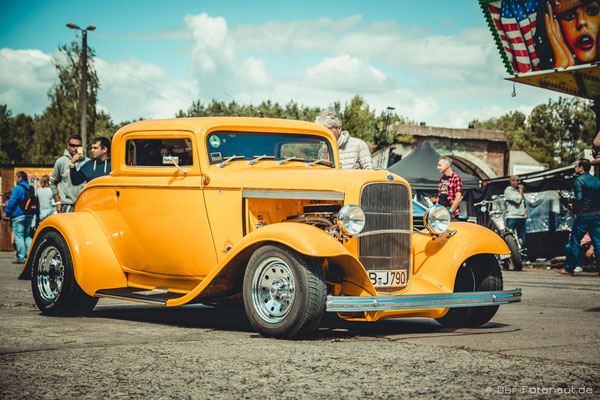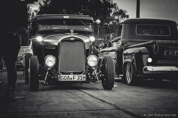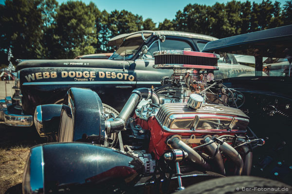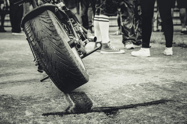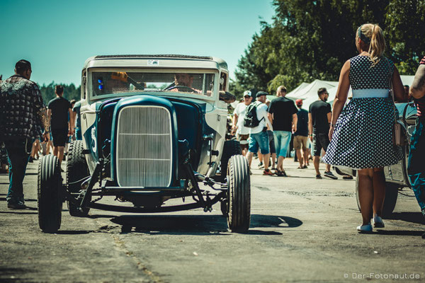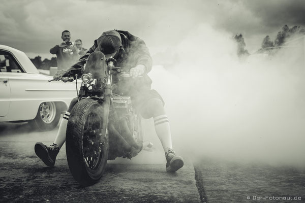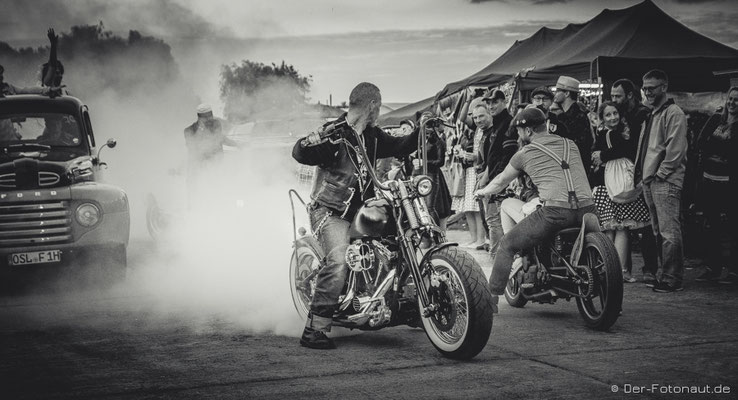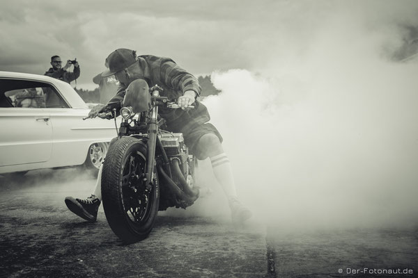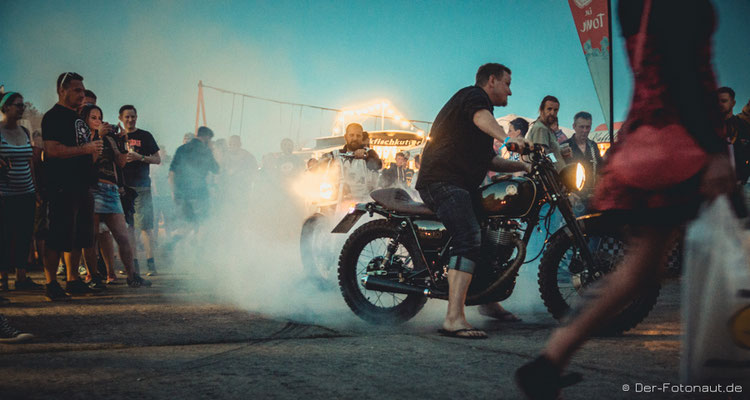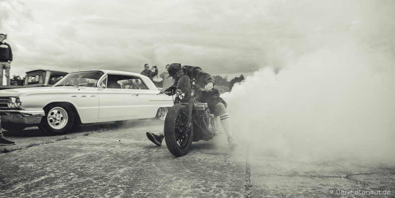 So komme ich gleich zu Punkt 2: Menschen aus aller Welt treffen sich hier, um sich mit ihren Hot Rods, klassischen Motorrädern und Custom Cars zu präsentieren und beim „1/8 Meilen-Beschleunigungsrennen“ mitzumachen. Ich kann euch sagen, es roch nach Gummi! Irgendwie habe ich den Geruch immer noch in der Nase. Sicher auch durch die diversen Burnouts :-D