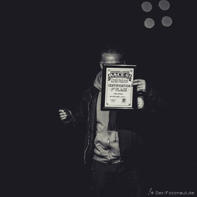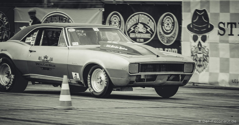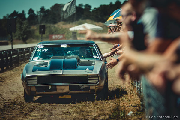 ...und sein 1. Platz mit seinem Chevrolet Camaro RS - 1/8 Meile sind 201 Meter in 6,2 Sekunden!!!