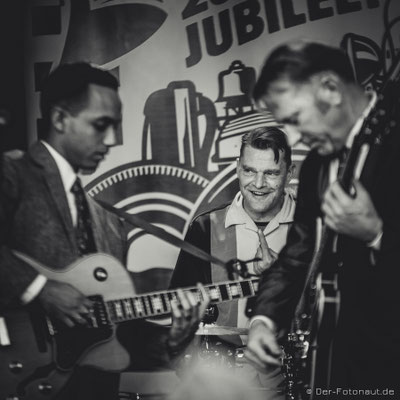 Er und seine Band spielen puren 50’-60’s Rock’n’Roll. Neben ein paar eigenen Songs kamen unter anderem Titel von Kenneth Parchman, Don Woody, Jerry Lee Lewis, Roy Hall… Es ist Mugge zum Hüfte schwingen, was ich dann neben dem Bildermachen auch tat. Der schöne Nebeneffekt dabei: Da es an dem Wochenende und vor allem zum Abend hin doch schon sehr frisch war, habe ich mich warm getanzt :-)