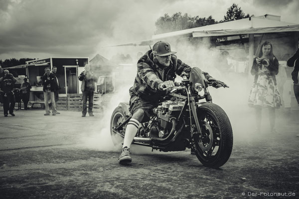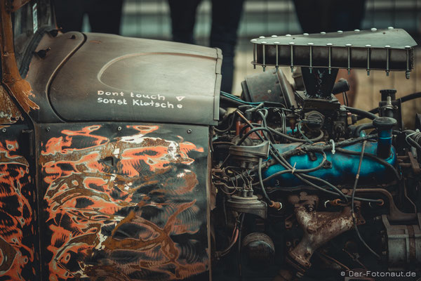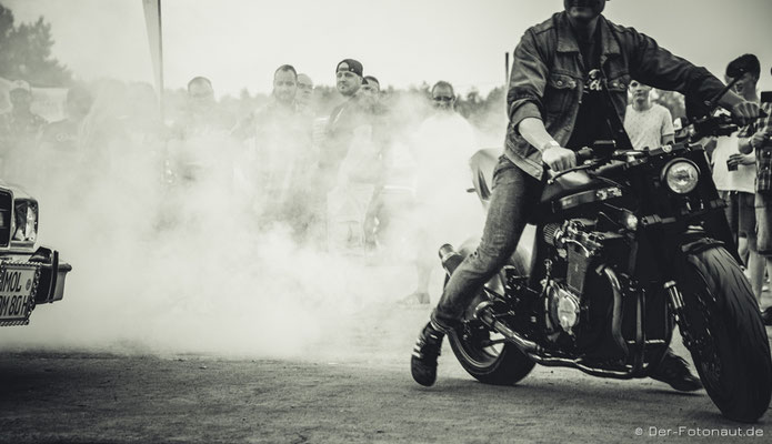 Nun war ich (erst) zum zweiten Mal da und es war einfach fantastisch! Wie schon im letzten Jahr war alles Hammer: Von der Mugge über die Menschen, die ich neu kennenlernen durfte, bis natürlich zu den Fahrzeugen auf zwei oder vier Rädern und deren Motoren Röhren und Blubbern und den Geruch nach Sprit.